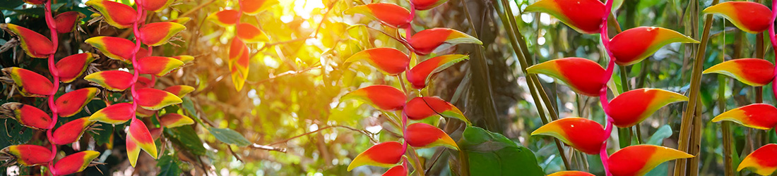 南国の強い日差しに負けない、鮮やかな赤やオレンジが印象的なヘリコニア。