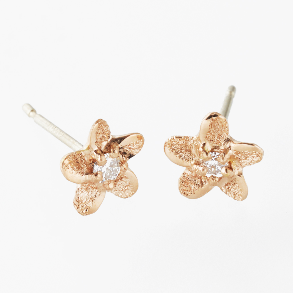 こちらのピアスはプルメリアの真ん中に誕生石がセッティングされているデザインになっています。