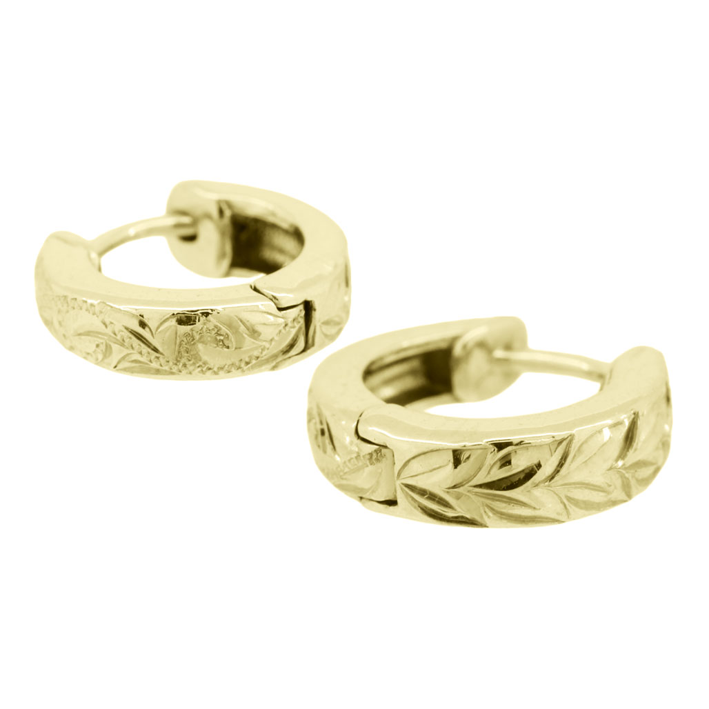 こうした、心地よい着け心地や、中折れの合わせのために、職人の技を用いながら、細かなパーツを丁寧に一つ一つ組立から手作業で行い、しかも贅沢にハワイアンジュエリーならではの手彫りを施した、小さいながらも、クオリティの高い仕上が特長です。