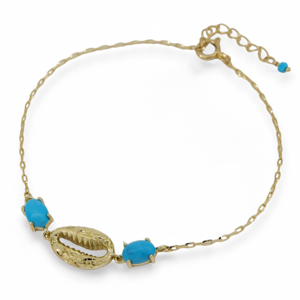最後にご紹介するのは、ちょっと珍しい‘’タカラガイ‘’とターコイズを組み合わせたレホ・ターコイズブレスレットです。