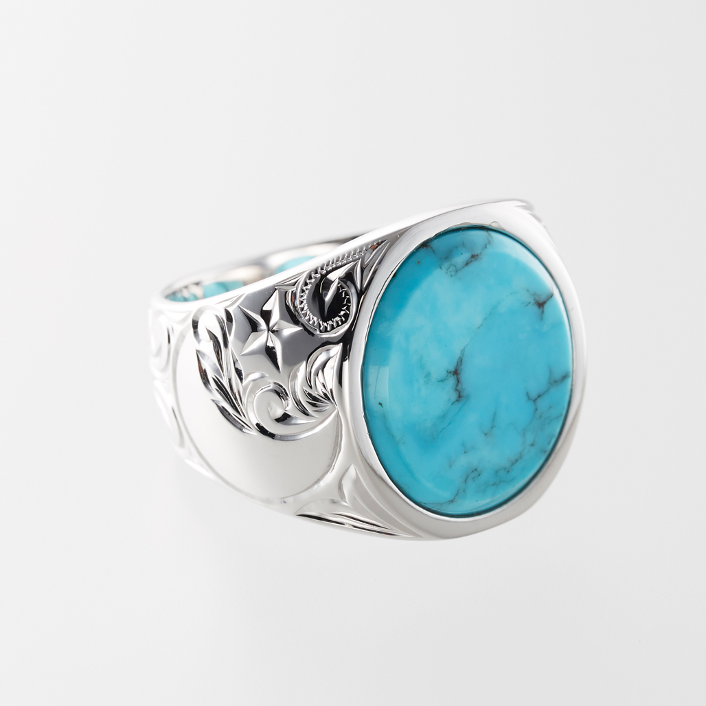まずご紹介したいのが、こちらのSVシグネットOVターコイズリングです。