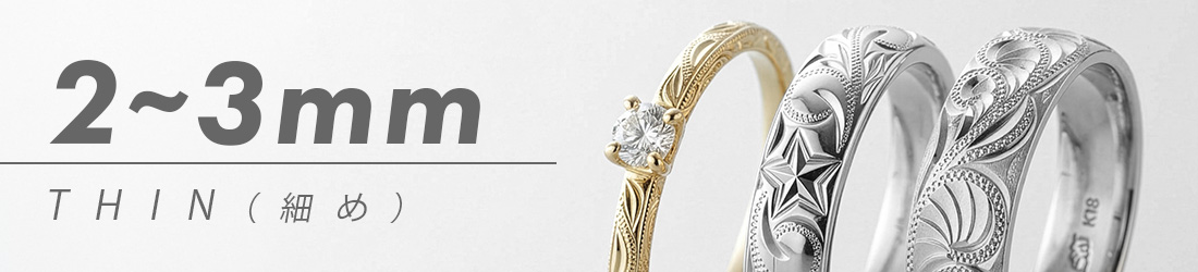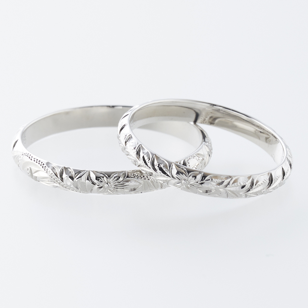 また、オリジナルの波やマイレのデザインにも選択肢があり、細くてもオリジナリティのあるリングが欲しいという方にもおすすめです。華奢な幅だからこそ、繊細な職人の技術が光る、細やかな手彫りが生きる1本になります。