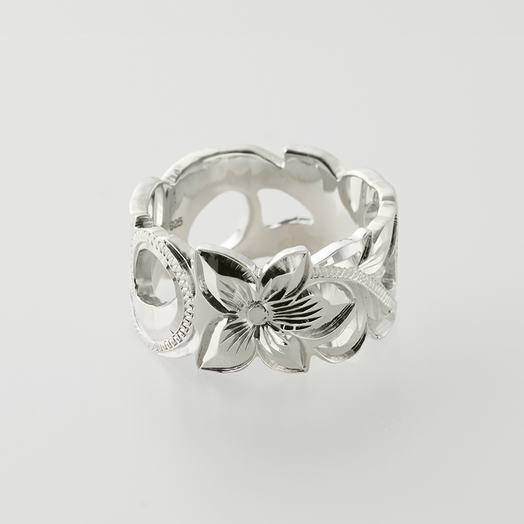 プルメリアをモチーフにした、彫りと透かしの美しい陰影をお楽しみください。