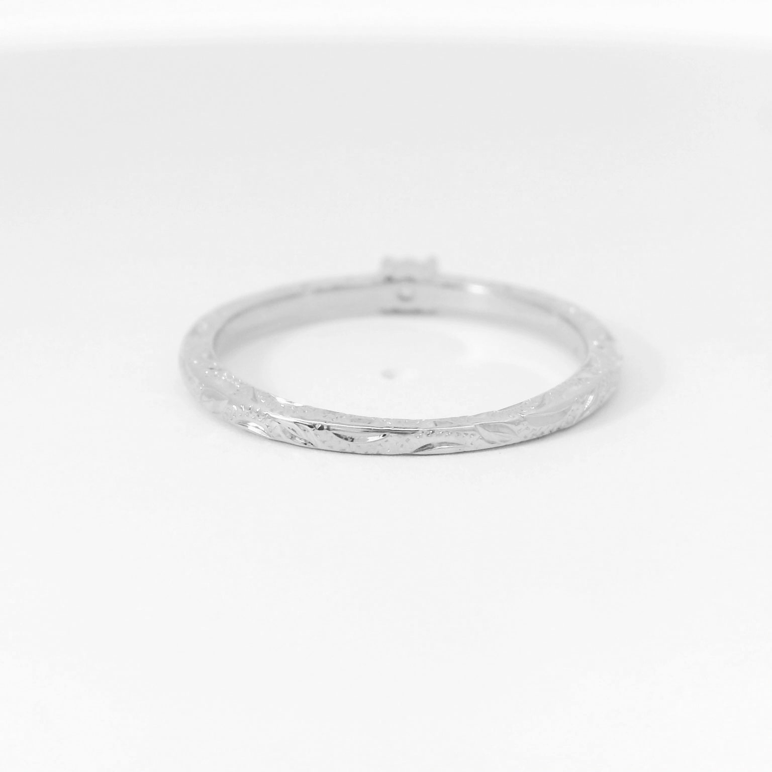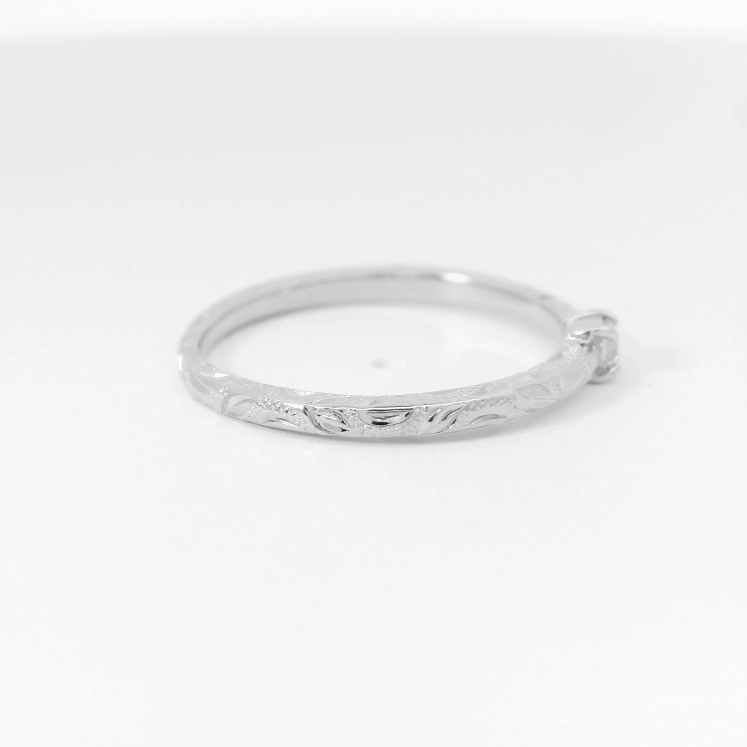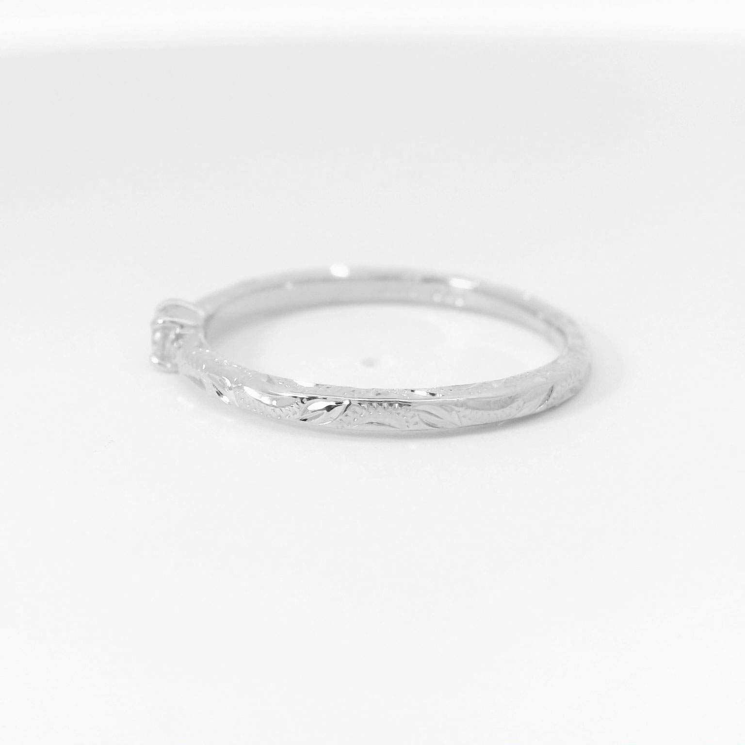 シンプルな4本爪と細身で主張しすぎないシャンクが、ダイヤモンドの輝きを引き立てています。
