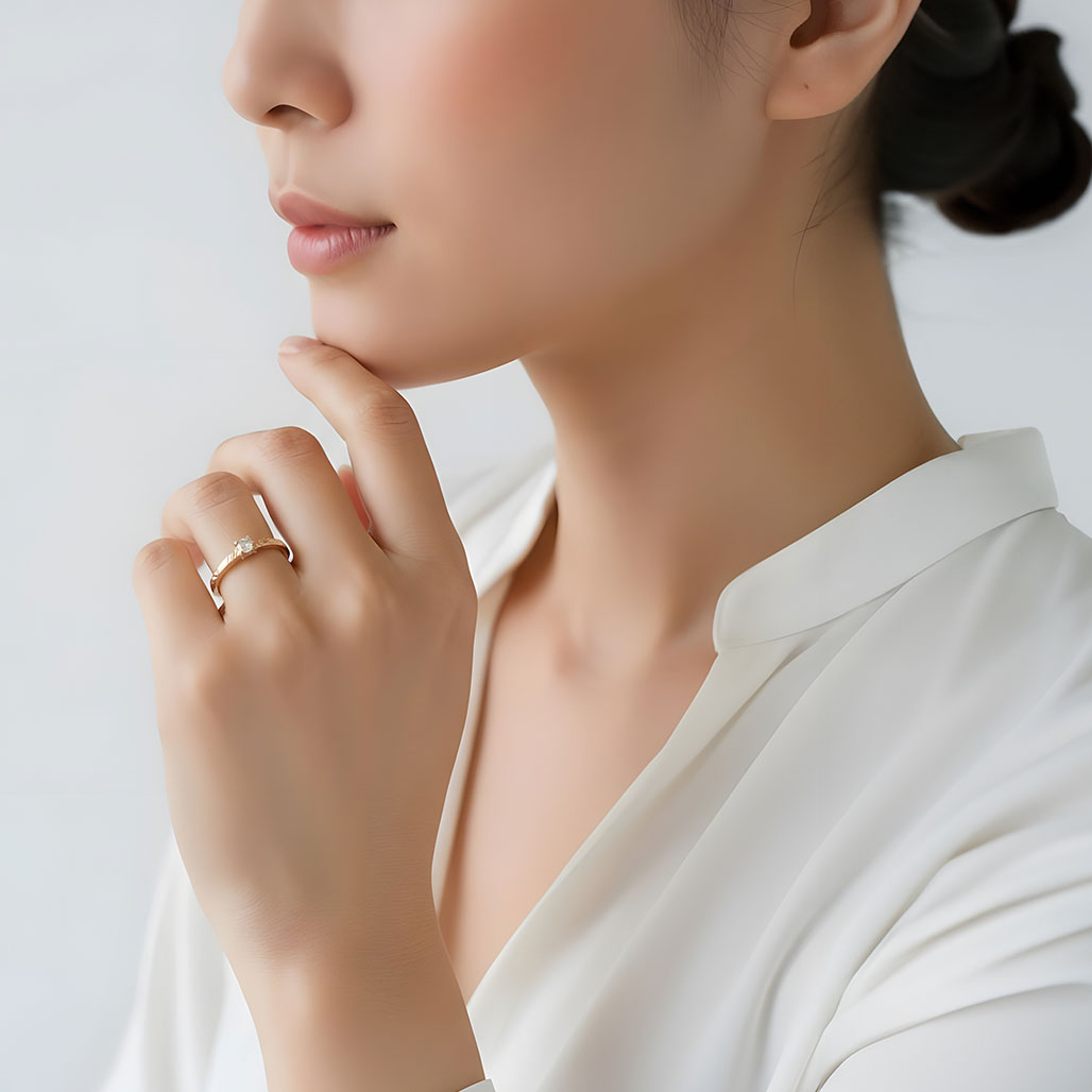 どの指にも着けやすく、重ね使いも2本3本とコーディネートしやすいだけでなく、