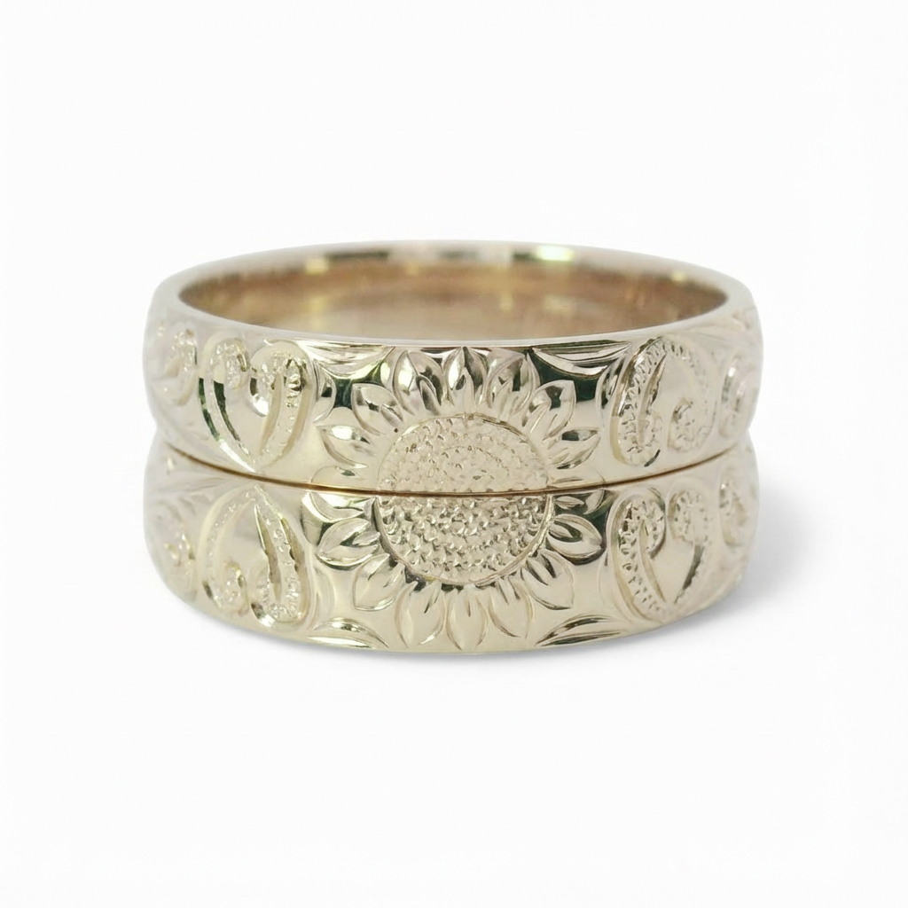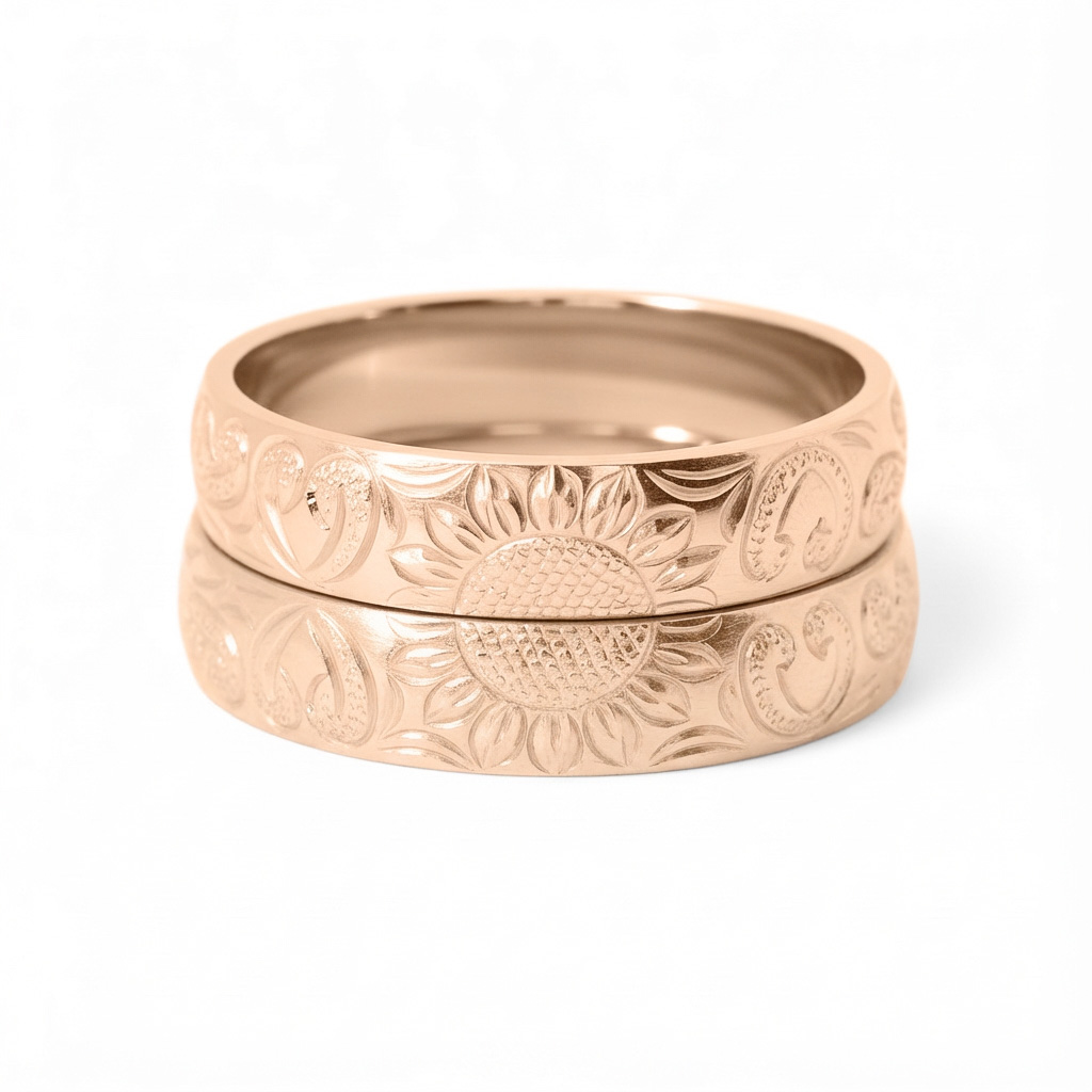 〔K14ピンクゴールド〕ひまわりとウミガメ/マナオラナ3mmリング